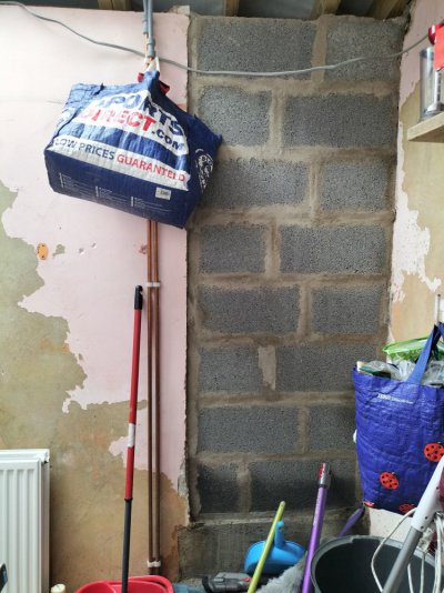 Th issue is as you can see that water makes its way through the bottom of the breeze block wall and in to the utility area. To complicate matters the area to the left of the breeze block wall is not a pit, its the garden height, making the pit about 3 ft lower than the garden.
