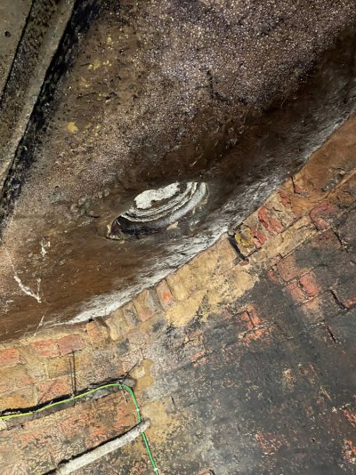 The area under the front steps is having significant water ingress because of bad maintenance. I believe there is yorkstone covered with some kind of asphalt and on the sides the previous owner has tried to cover the various cracks with cement. From the inside water is leaking through the coal hole cover and from the sides where the various cracks are. The plaster has blown off and the water ingress does create significant condensation that affects the whole property.