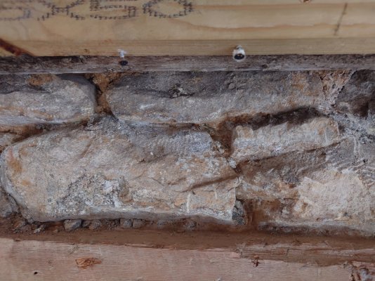 The area that has been rebuilt with concrete blocks is obviously a concern but probably cannot be remedied without an amount of work we're not comfortable with taking on at this time, plan is to replace the blocks that have been removed unless anyone can offer a good alternative?