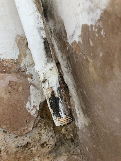 We have this pipe in our house, open at one end with thread, goes up the wall and along the ceilings of the living room and dining room, disappearing off above the kitchen ceiling. It seems to branch off up into the ceilings. Any ideas are welcome! We have had various professionals shrug, but would love to remove it if it is safe! I think it is made of steel.