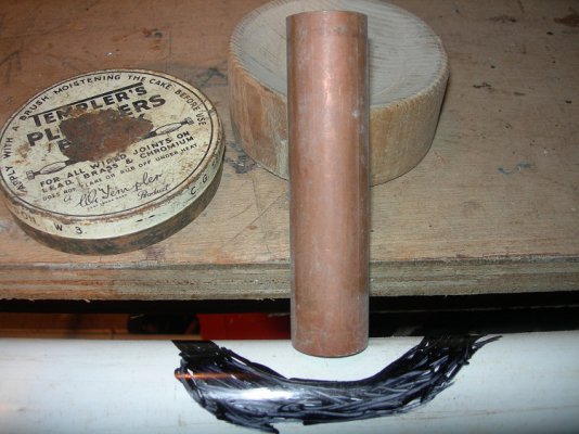 I've used a piece of plastic waste pipe just as an example and marked it with marker pen as if it was the blacking. Depending on the diameter of the the pipe that is going to have the branch put on it and the size of the branch pipe, the relevant hole is selected in the development plate and a line is scribed using one point of the dividers onto the blackened pipe. The area of blacking within this line is scraped back to clean lead and the new branch is placed in the hole of the main pipe and is connected on to it with a wiped solder joint.